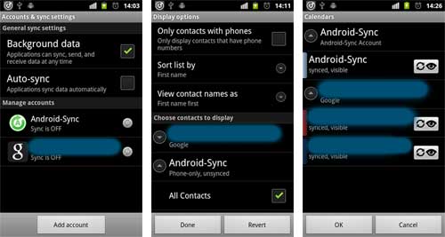 * Android-Sync account is an Android account, that stores contacts and appointments locally, and syncs with Android-Sync and Outlook, using the USB connection only.